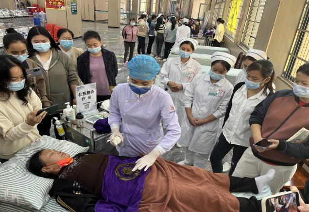 座谈后,国壮护理团队举办壮医新技术专题培训会,为基层护理人员授课讲解壮医捶痧疗法、壮医脐灸疗法等壮医护理技术,现场示范操作流程,并在培训后开展义诊活动,用壮医护理技术为基层群众解决健康问题。