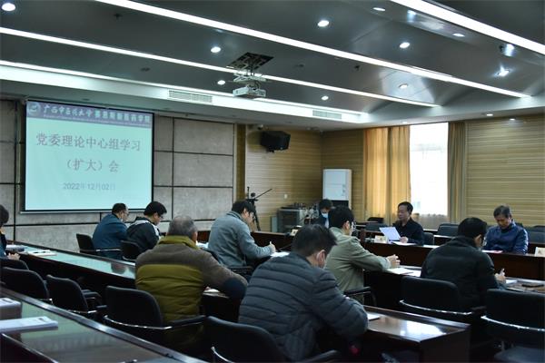 12月2日上午,赛院在第二会议室召开党委理论学习中心组学习(扩大)会,专题学习党的二十大精神,研究部署学习宣传贯彻工作。赛院党委书记李成林主持会议并讲话,党委副书记、院长梁天坚,纪委书记傅鹏,副院长赵斌,全体中层干部,各级党组织书记参加学习。