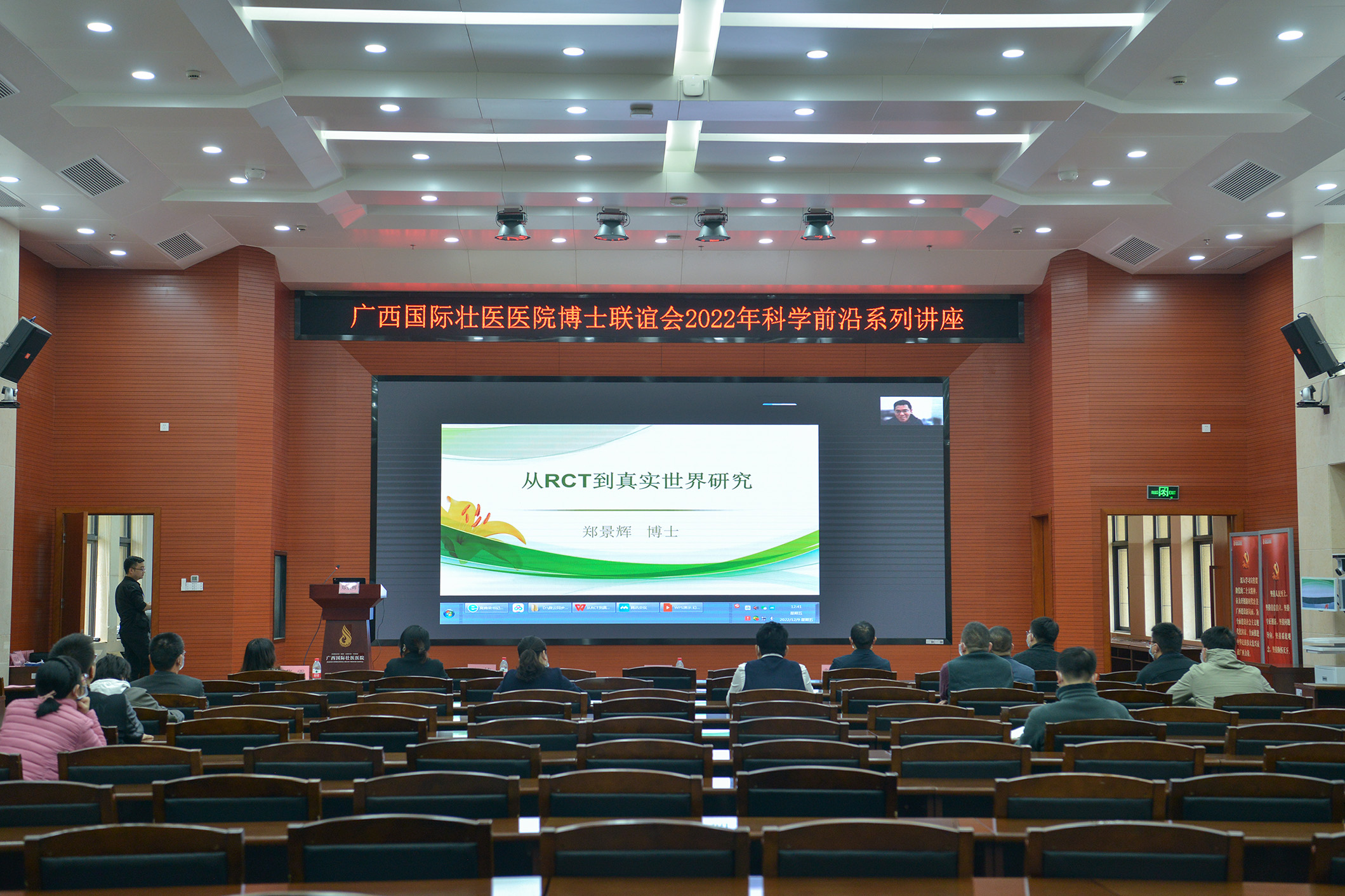 为进一步深入实施人才强院战略,推进医院人才队伍建设,推动医院高质量发展,12月9日,广西国际壮医医院举办博士联谊会科学前沿讲座,邀请Beat365中国唯一官方网站学科建设办公室副主任郑景辉博士,Beat365中国唯一官方网站第一附属医院党委委员、脑病科一区主任、中医内科学教研室主任胡跃强教授,以线上形式授课。院长岳桂华出席并讲话、副院长李铭主持讲座,30余名博士到场聆听、交流,未到场的博士及其他人员,通过直播方式收看了讲座。