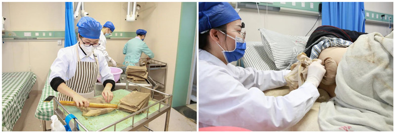 制作敷料,进行熨烫治疗