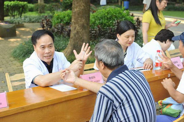 为积极响应广西中医药管理局开展 “中医中药中国行文化科普宣传周”活动的号召,9月17日上午,一附院会同东葛社区卫生服务中心在南宁市金花茶公园广场举行主题为“‘中医中药中国行文化科普宣传周’进社区”的义诊宣教活动。广西名老中医钱海凌主任、广西名中医廖小波主任、皮肤科钟江主任、骨病科曾平博士、推拿科雷龙鸣博士、脾胃病科纪云西博士、呼吸内科欧阳敦医师、预防保健科冯英华医师等共近10余位专家参加了义诊活动。