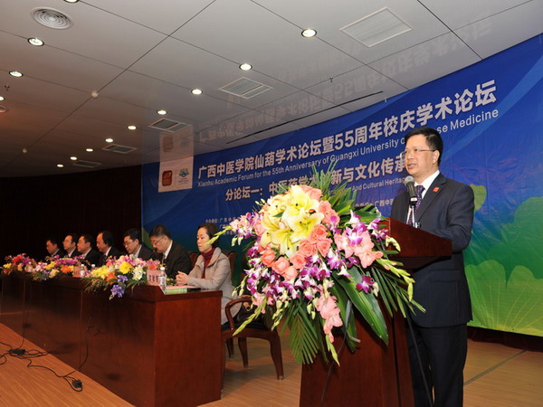 2011年12月19日下午,以“中医药学术创新与文化传承”为主题的广西中医学院首届“仙葫学术论坛”分论坛在一附院多功能学术大厅隆重召开。此次论坛由广西中医学院、广西中医药管理局、广西中医药学会共同主办,一附院承办,学院副厅级调研员邓家刚教授、一附院党委书记李敏智教授、院长黄贵华博士、学院学科建设办公室副主任吴林博士及一附院全体领导班子出席论坛。论坛由医院副院长韦艾凌博导、博士主持,医院院长黄贵华博士代表医院致欢迎辞,副厅级调研员邓家刚教授代表学院致辞。论坛特邀了国内中医药、民族医药领域六位著名专家围绕论坛主题进行精彩学术报告。来自广西中医学院校本部、一附院、附属瑞康医院、赛恩斯新医药学院、护理学院、制药厂的500余名嘉宾参加了本次论坛。