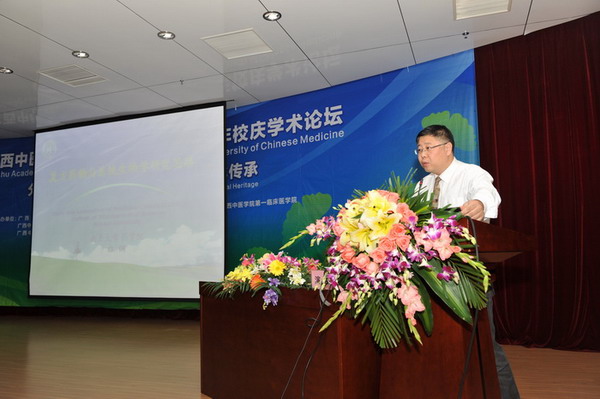 本次论坛以学术交流为目的,为扩大校内外高水平的学术交流提供平台,以推动高水平大学建设,提高服务社会和经济的能力。论坛活动呈现出了浓厚的学术气氛。天津药物研究院张铁军研究员、天津中医药大学中药学院张艳军教授、南开大学药学院白钢教授、一附院黄瑾明教授、一附院庞黎明主任、广西中医学院附属瑞康医院唐耀平博士六位专家围绕“中医药学术创新与文化传承”的议题,先后对各自研究方向的最新研究方法和出色研究成果作了精彩汇报,内容涉及中药新药研发、中药配伍规律机制创新性探索、壮医药疗法的传承、临床新技术诸如腔镜研究新进展的介绍等多个方面,多角度展示了传统医药理论与现代先进方法技术相结合所进行的高水平研究,令参会人员在传统医药传承与创新的研究思路上深受启发,受益匪浅。