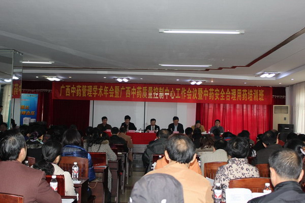 2011年12月13-14日,由一附院承办的“广西中药管理委员会2011年年会暨广西中药临床质量控制中心工作会议及国家级医学继续教育项目中药安全合理用药培训班”在广西象州县成功举行。参加会议的领导和专家有:学院副厅级调研员邓家刚教授;广西中医药学会秘书长李方教授;一附院副院长、广西中药临床质量控制中心主任、博士生导师韦艾凌教授;学院药学院副院长易蔚教授;广西中药管理委员会主任委员、一附院伍小燕教授、中药管理委员会的副主任委员以及来自广西各地医疗机构药剂科主任、中药管理专家、代表共108人。会议主要议题有:广西中药临床质量控制中心工作会议;广西中药管理学术年会;国家级医学继续教育项目中药安全合理用药培训班。