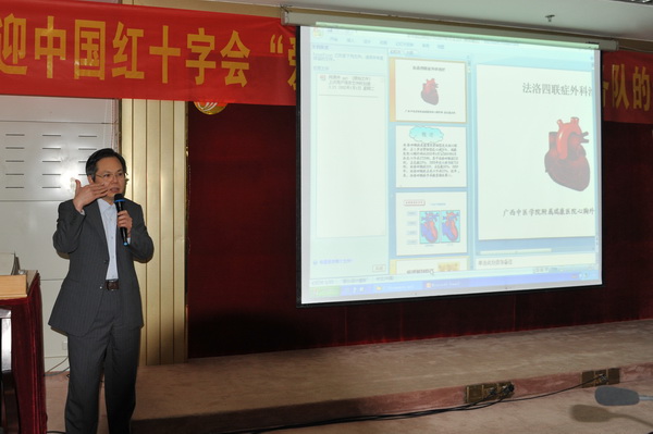2011年12月31日上午,中国红十字会“爱心工程”胡大一爱心志愿服务队先心病广西培训基地揭牌仪式首期培训在瑞康医院开班,卫生部健康教育首席专家、北京大学人民医院心脏中心主任、胡大一爱心志愿服务队发起人胡大一教授亲临授课并指导教学查房。来自全区各基层医院近200名医生参加了培训班。