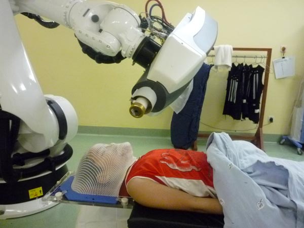2012年5月4日早上,在瑞康医院住院的男孩国国的巨舌接受了一次“射波刀”的治疗,就不流口水了。国国父亲看到这一幕,脸上露出了笑容。