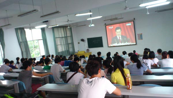 瑞康临床医学院各年级学生认真观看胡锦涛总书记讲话视频