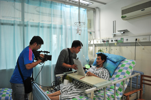 11月23日,南宁电视台《帮得行动》栏目组来到瑞康医院胸心外科病房,采访了一位特殊的病人。说到这位病人的特殊,不仅因为他两耳失聪,医护人员难以沟通,还因为自他入院以后,就再没有亲属来照顾过他。所幸他遇到了一群有爱心有责任感的医护人员,才让他的病情转危为安。