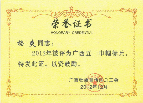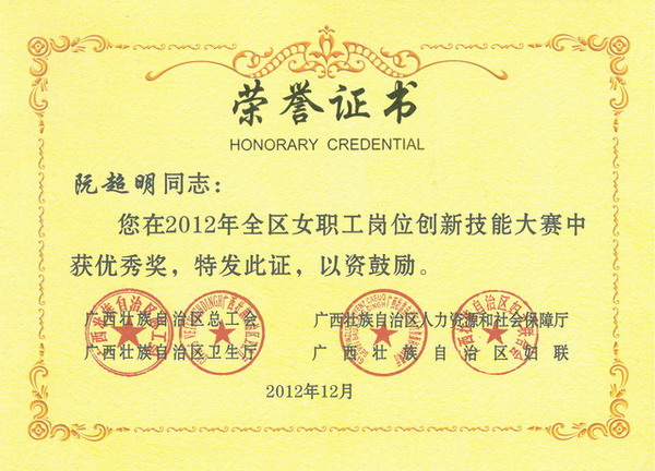 阮超明荣获全区女职工岗位创新大赛优秀奖