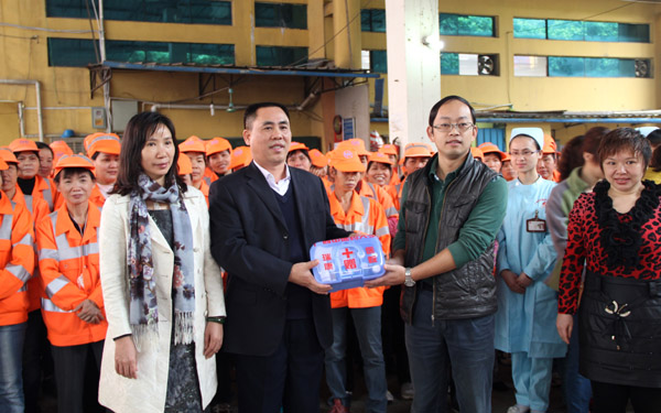 唐友明书记在活动中号召广大医护人员、学生向雷锋同志学习,积极践行雷锋精神,参加“绿色环保、健康你我”的学雷锋主题活动,向可爱的“城市美容师”学习,建设美好城市环境。唐友明书记与陈日兰副书记一同向环卫站赠送了医疗药箱和健康体检卡。