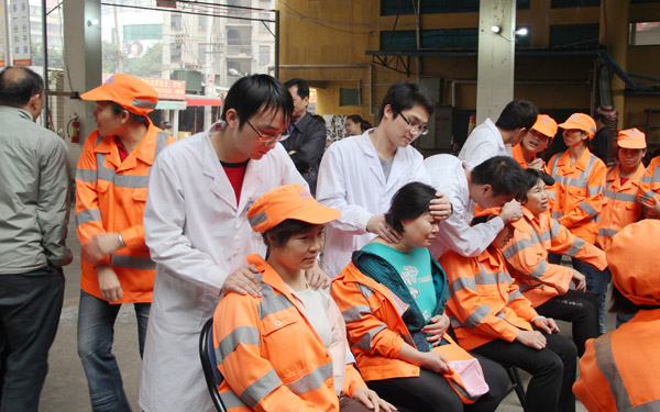 针对春季颈肩腰腿痛、呼吸系统疾病易发、多发的特点,结合环卫工人的工作性质,瑞康医院选派中医内科专家覃洁梅、呼吸内科副主任医师程世和、妇科博士伍娟娟等专科医生参加义诊送健康活动,为环卫站配备常用药箱,医生耐心详细地解答了环卫工人提出的健康方面的问题,并给予了相应的科学健康指导,同时免费发放预防春季流感的药物及凉茶;护士们为环卫工人发放健康关爱服务手册、提供免费体检项目、开展健康管理;推拿技师为环卫工人做按摩,舒解他们疲劳的身躯,为这些最可爱的“城市美容师”的健康上岗保驾护航。当天共有300多名环卫工人接受了义诊服务,负责路面清洁的环卫工人黄阿姨说:“我岁数大了,身体总有些不适,所以来现场让医生检查一下,现在知道自己的身体状况后,心里踏实多了”。