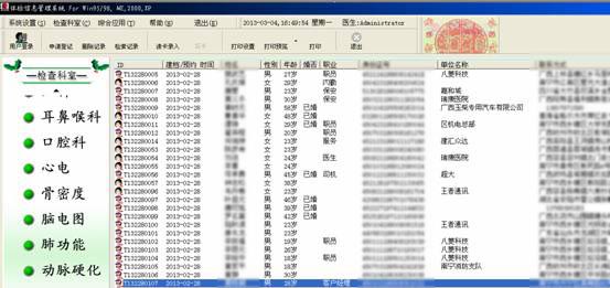 体检管理信息系统具有全面管理体检中心各项业务的功能,具体功能有体检登记,基础数据维护与设置,采样处理,化验处理,视力检查,内外科检查,B超检查,终检结论填写,综合统计与查询等。