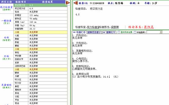 体检管理信息系统还与瑞康医院LIS系统,HIS系统进行无缝融合,患者进行体检登记时与收费处进行数据对传,采样化验与LIS报告发布数据进行互传,提高了工作效率,也提高了工作质量。