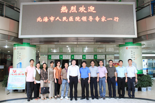 4月27日上午,北海市人民医院黄少伟副院长、信息科陈国耿主任等一行8人莅临瑞康医院参观手术麻醉科,并考察了瑞康医院正在使用的手术麻醉管理信息系统及重症监护系统。