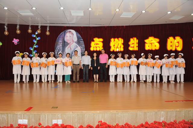 2013年5月6日下午,一附院在医院多功能学术厅举办以“点燃生命的太阳”为主题的“5.12”国际护士节庆祝表彰大会暨新护士授帽仪式。医院院长黄贵华,党委副书记、纪委书记、副院长吴西西,副院长卢健棋、桂雄斌、周建国、钟远鸣等领导出席了本次庆祝表彰大会,各职能部门和临床科室的主任、离退休护理前辈,全院500余名护士及48名新护士参加了会议。