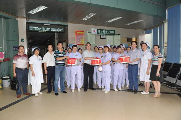 一附院院长黄贵华,副院长卢健棋、周建国慰问急诊科护理人员
