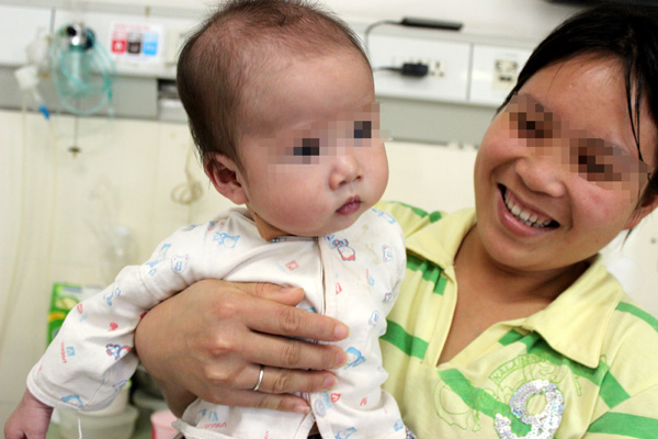 黄毛毛是在去年秋季出生的,今年三月因为一场病情反复的感冒被爸妈抱进了医院,在当地医院检查时发现他嘴唇、手指都有明显的紫绀现象,不像普通小孩那样红润、有光泽,经过进一步的心脏彩超检查发现,黄毛毛患有先天性心脏病,而且是非常复杂的畸形,医生认为,他患共同动脉干的可能性大,同时不排除肺动脉瓣闭锁的可能,此外还有室间隔大缺损、动脉干骑跨、左冠状动脉增宽、体肺侧支循环形成、房间隔缺损这些复杂的问题。看着才六个月的孩子,这么小就遭了那么大的罪,黄毛毛的爸妈心急如焚,由于当地医院缺乏进一步医治的条件,在当地医生的推荐下,他们赶到瑞康医院心胸外科求医。