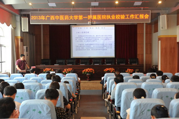 2013年6月28日,由自治区卫生厅副调研员郑柳明带队的执业校验专家组一行9人,到一附院进行2013年度执业校验现场评审。