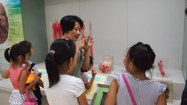 活动期间,孩子们参观了学校医药会展中心,会展中心共展出中成药样品、中药浸制标本、中药饮片标本、药用动物标本、人体解剖标本等标本及挂图13000多种(件),同时拥有一个种植了1200种药用植物的植物园。中心各展厅展品的展示,既有浓郁的传统医学和地方医药特色,又有鲜明的时代气息,将专业性、知识性,艺术性融为一体,让孩子们充分感受到了中医药文化博大精深的特殊魅力。