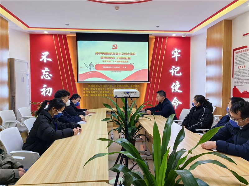为深入学习宣传贯彻落实党的二十大精神,1月29日下午,一附院财务后勤第二党支部书记卢春为财务后勤第二党支部党员、支部所辖科室后勤部及基建房管科群众代表共20余人作了题为《高举中国特色社会主义伟大旗帜 勇担新使命 护航新征程》学习党的二十大精神专题党课。