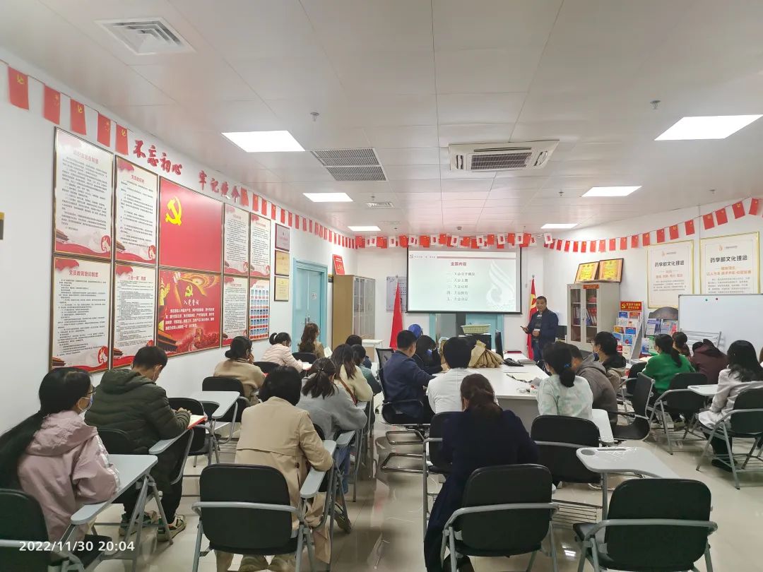 2022年11月30日,支部集中学习党的二十大报告。支部书记韦斯军围绕大会召开背景、会议主题、报告内容、大会决议等多方面领学党的二十大精神,引领大家在本职岗位中践行二十大精神。