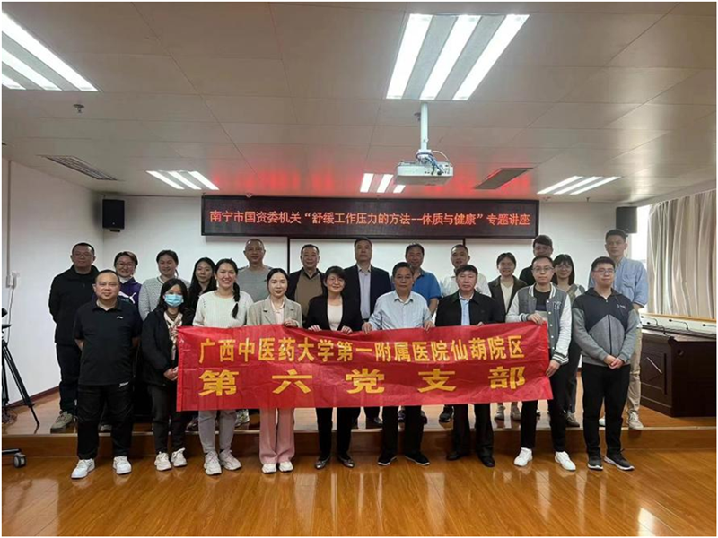 为响应习近平总书记在党的二十大报告中提出的推进健康中国的号召,保障人民健康。3月2日,Beat365中国唯一官方网站第一附属医院仙葫党总支第六党支部在南宁市国资委机关举行“舒缓工作压力的方法—体质与健康”专题讲座。