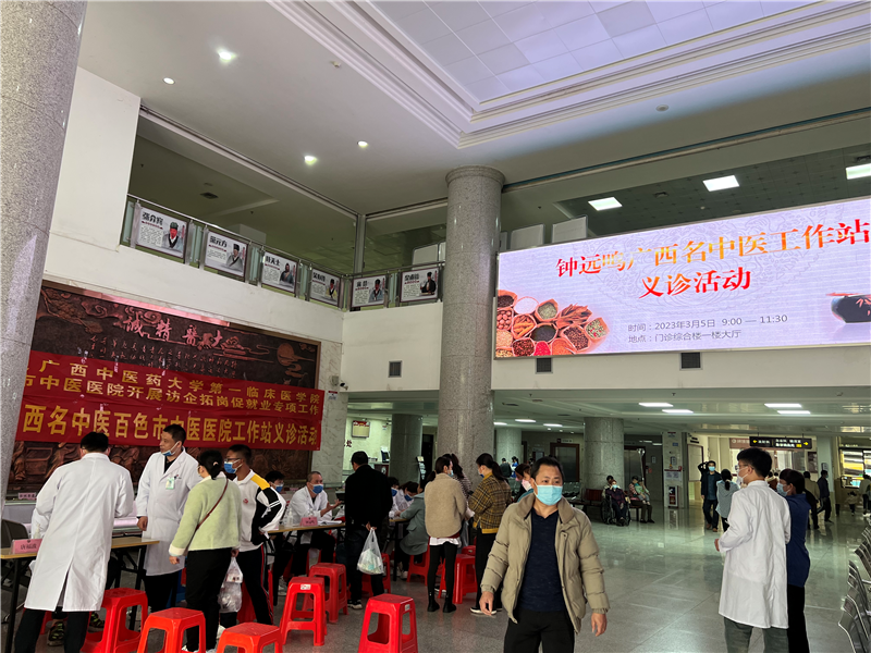 为深入开展名中医学术传承及技术指导,以一附院钟远鸣广西名中医百色市中医医院工作站为依托,充分发挥中医药特色优势及“传帮带”作用。3月5日,钟远鸣名中医专家团队暨外科党总支第五党支部一行11人到百色市中医医院开展义诊、教学查房等系列活动。