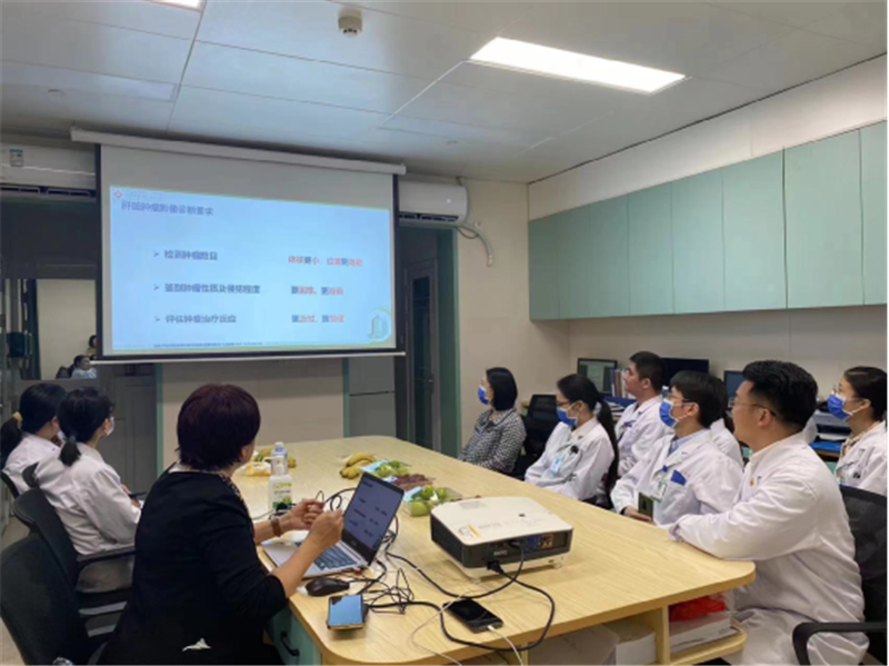 活动现场,超声科主任刘雪玲向参会的党员同志们讲解了超声造影在肝脏占位性病变诊疗中的应用与优势,并以实际的临床案例逐一向大家介绍超声造影在肝癌、肝硬化结节、肝囊肿、炎性局灶病变等疾病的诊断和治疗中作用。随后,与会的同志就该项技术以及超声引导下肝癌射频消融、肝穿刺活检、肝脓肿引流、胆道引流等技术的应用展开了深入的讨论,充分认识到新技术、新手段对学科和临床发展的推动作用。