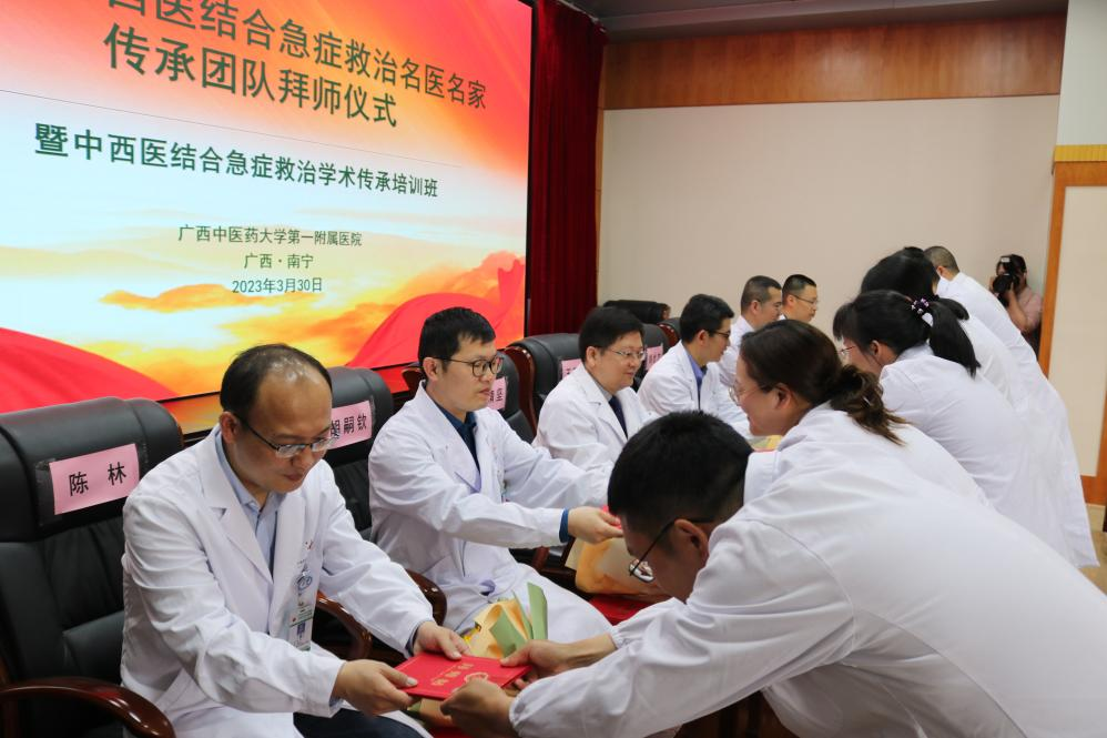 为贯彻落实习近平总书记在二十大报告中提出的“促进中医药传承创新发展”“教育、科技、人才是全面建设社会主义现代化国家的基础性、战略性支撑”的会议精神,带动区域内中西医人才队伍建设,进一步助力各共建单位中西医传承创新人才的成长,支撑中西医事业的可持续发展,更好地发挥中西医特色为广大人民群众健康服务,Beat365中国唯一官方网站第一附属医院在全区各级医院范围内建立名医名家工作室团队师承培养体系,开展中西医传承创新人才培养工作,引领广西中医药人才队伍培养模式的革新探索。