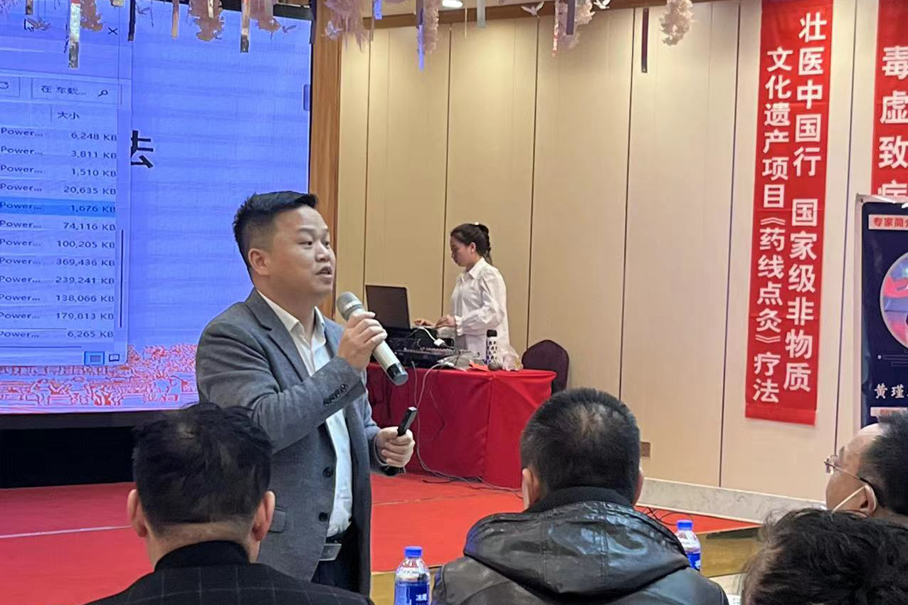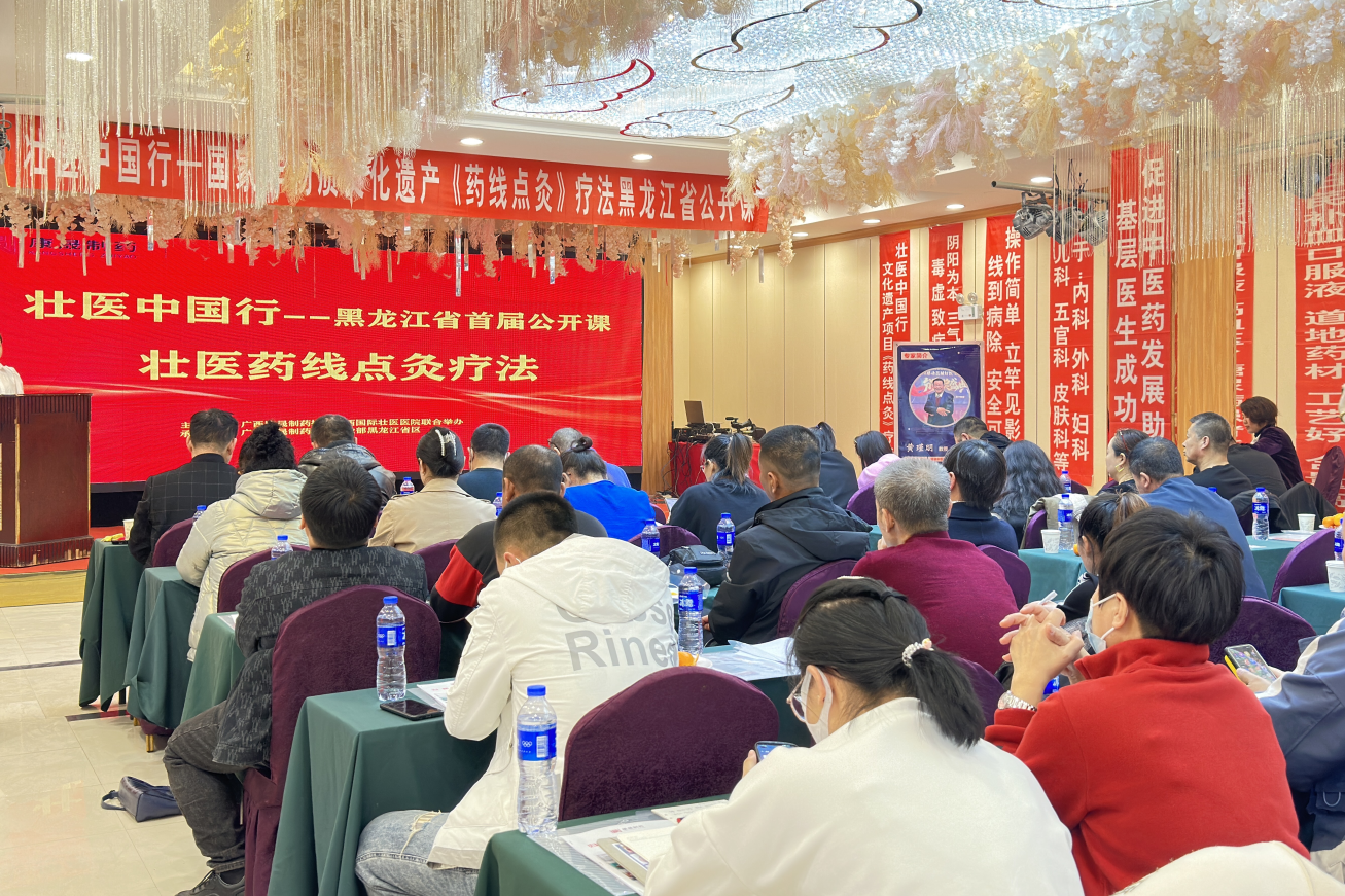 4月8日,附属国际壮医医院壮医经典病房主任潘明甫受邀前往黑龙江省哈尔滨市工业医院,开展“国家非物质文化遗产——药线点灸疗法”培训讲座,向当地96名基层医疗卫生机构医务人员展示壮医药的独特魅力。