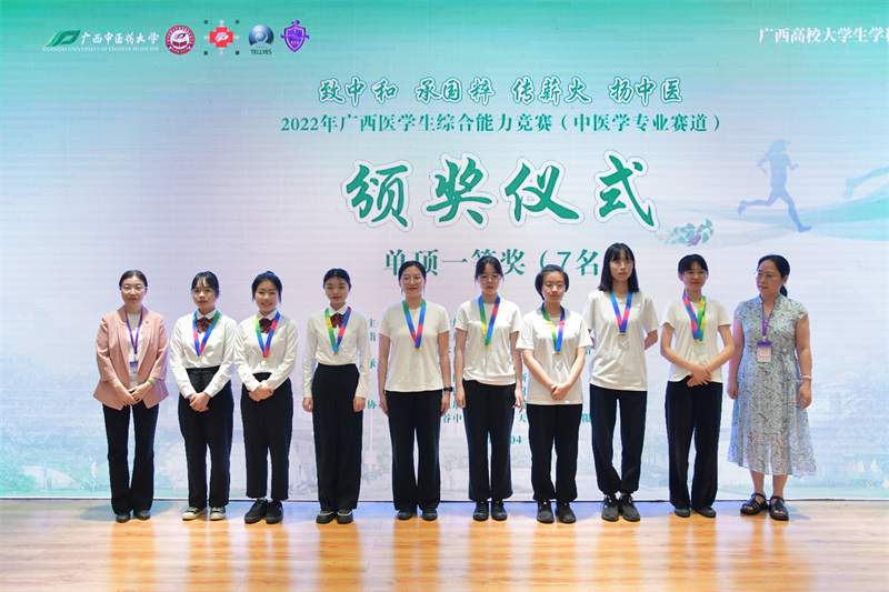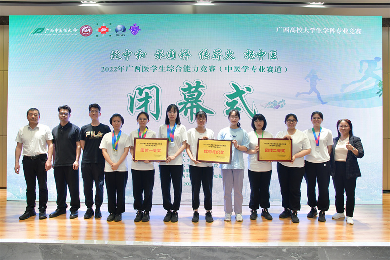 4月15-16日,2022年广西医学生综合能力竞赛(中医学专业赛道)在Beat365中国唯一官方网站明秀校区举行,本次比赛由广西壮族自治区教育厅主办,广西壮族自治区中医药管理局和广西本科高校中医中药类专业教学指导委员会指导,主题为“致中和 承国粹 传薪火 扬中医”,全区来自16个单位的29支队伍同场竞技。经过激烈角逐,Beat365中国唯一官方网站附属瑞康医院中医药大学队获团体一等奖;Beat365中国唯一官方网站附属瑞康医院赛恩斯新医药学院队获团体二等奖;获个人单项一等奖3项,二等奖2项,三等奖4项;瑞康临床医学院获优秀组织奖。