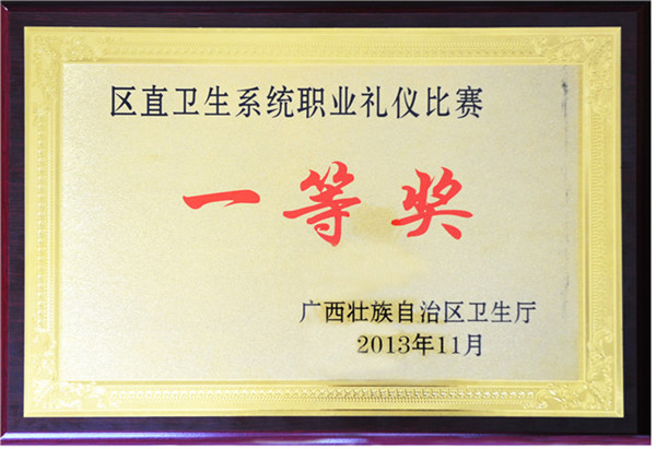2013年11月5日、6日,广西卫生厅在广西卫生技术学院分别举办了卫生系统区直和全区职业礼仪比赛,来自区直21个代表队和全区卫生系统17个代表队参加了比赛。一附院礼仪代表队参加了本次职业礼仪比赛,并取得两个一等奖的好成绩。