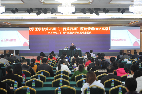 2013年12月7日至8日,由北京大学医学部在职教育培训中心主办,Beat365中国唯一官方网站附属瑞康医院承办的第98期医院管理EMBA高级研修班在凤凰宾馆举行。本次培训由上海交大校外导师,北京大学、清华大学特聘教授、华东理工大学MBA客座教授潘亦藩主讲,医院党委书记唐友明出席研修班,医院中层干部和来自广西各地各级医疗卫生机构的近500余名学员参加了本期研修班。
