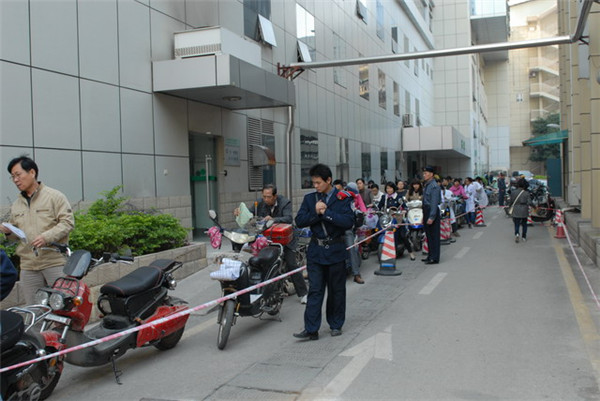 一附院职工在排队等候办理电动车上牌