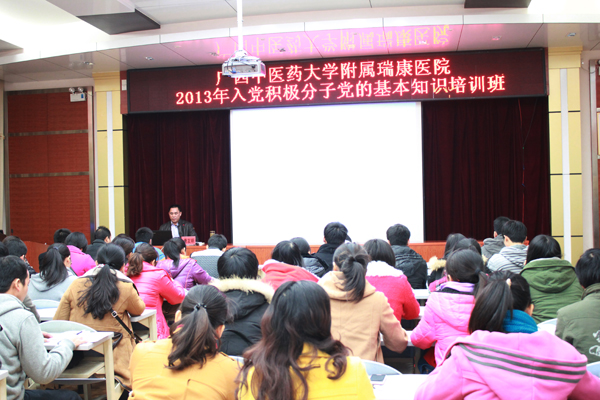 12月19日至20日,Beat365中国唯一官方网站瑞康临床医学院2013年入党积极分子培训班开课。医院党委书记唐友明,党委副书记、纪委书记陈日兰及教务学生党总支书记王瑜为入党积极分子教授党的基本知识相关课程。