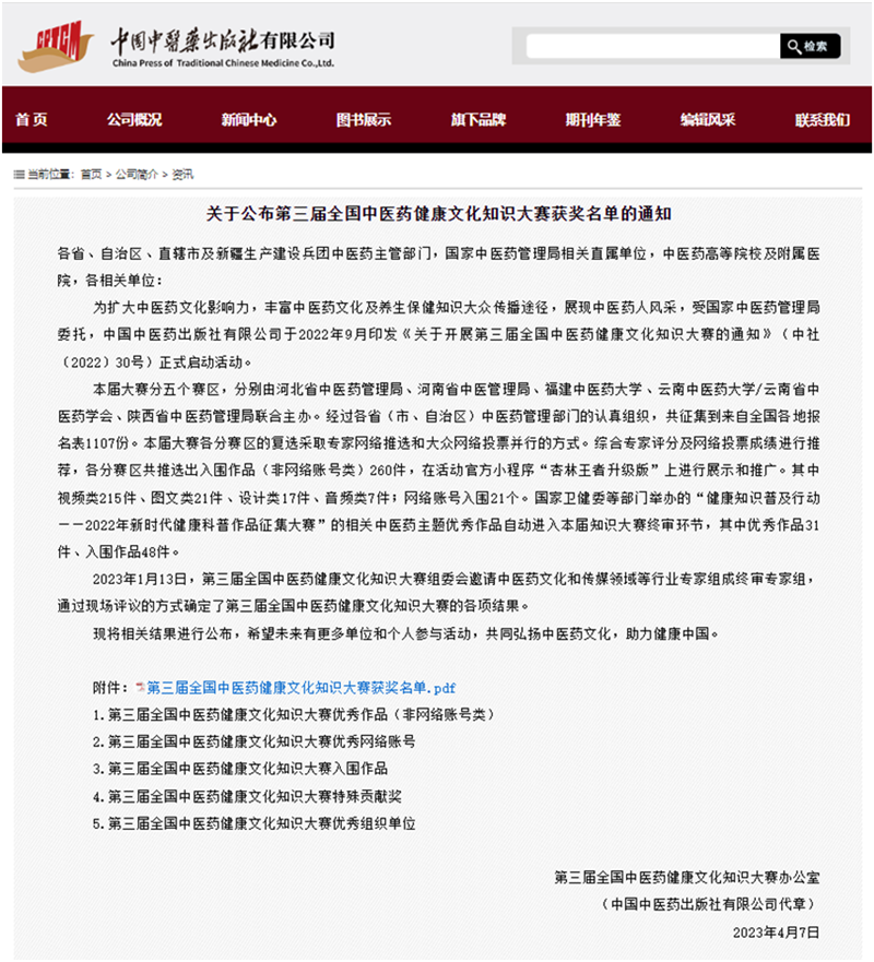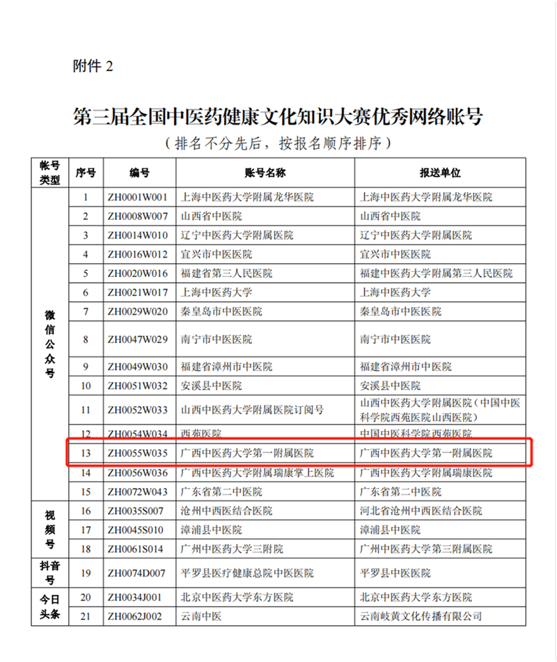 喜讯!一附院微信公众号入围第三届全国中医药健康文化知识大赛优秀网络账号