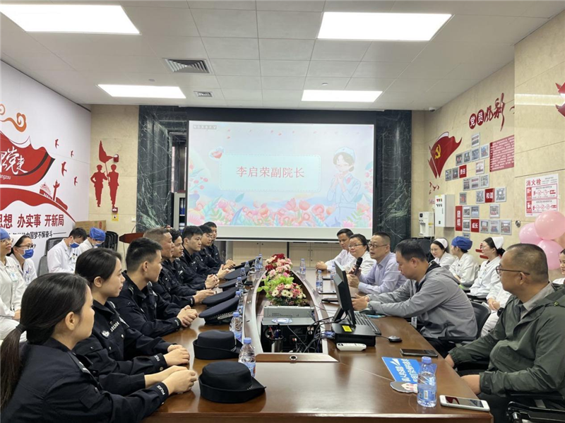 上午,仙葫急诊科以不一样的形式庆祝“5.12”国际护士节。庆典仪式上邓海霞主任向全体护理人员送上节日的问候。庆典结束后,在仙葫院区党总支第一党支部党员活动室开展了“警医共建、守护生命”主题党日活动,仙葫院区副院长李启荣,仙葫派出所副所长韦天献及派出所骨干,仙葫第四党支部、第十三党支部参加了本次活动。李启荣送上了节日的祝贺,也对派出所民警的莅临表示欢迎。交流中,民警对医护在工作中遇到的有关安全问题认真倾听,并表示今后对医护工作环境安全提供更好的保障。