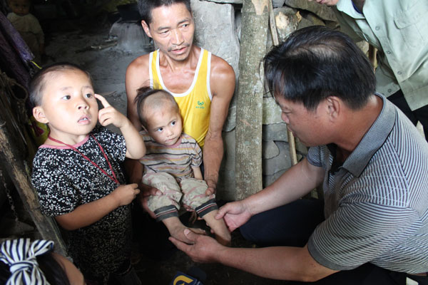 爸爸去世妈妈改嫁时,最小的弟弟兰天才9个月,姐姐兰仙玲不过三岁。尽管艰难重重,年迈的爷爷奶奶从来没有放弃过抚养这三个孩子。可是随着孩子越长越大,最小的孩子兰天已经三岁了,他们越来越担心,除了大姐兰仙玲的脚部畸形没那么严重之外,另外两个孩子的情况都不太好,尤其是二姐兰仙军,双脚脚掌都不能着地,整个身体完全靠脚背支撑,稚嫩的双脚已经被磨上了厚厚一层老茧。