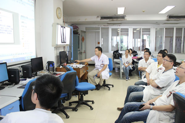 骨四肢二区常务副主任陈跃平和同事们在看孩子的片子