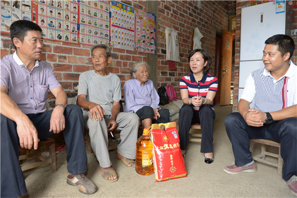 座谈会结束后,李敏智书记代表一附院向龙尧村捐款8000元人民币,用以修复该村被暴雨冲毁的入村主要通道,并实地考察了村屯、社区的清洁乡村工作开展情况和扶贫项目建设情况。在当地干部的陪同下,一附院领导一行对该村部分老党员、贫困群众进行了慰问,为他们送去了大米、食用油等慰问品。