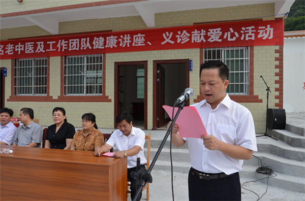 受医院领导的委托,院长助理、院办主任黄仲海在揭牌仪式上发表讲话。他说:广中医一直倡导专家学者走向基层,桂派大师黄鼎坚教授在晚年仍然不忘记家乡父老乡亲的身心健康,积极利用自己的技术和热诚为家乡人民服务,是广中医院训“悲悯为怀、精益求精”的具体体现。此次活动的顺利举行,也是一附院送医送药到基层、服务最基层的又一有效形式的良好开端;一附院今后将推动一附院更多的大师、更多的名医工作室走向基层,更好更广泛地为广大的人民群众服务,使各地父老乡亲在家门口就能享受到“广中医”的优质医疗服务。