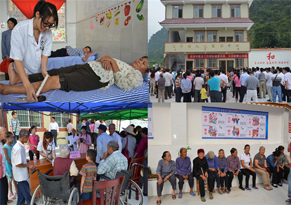 活动期间,还举行了东兰公平村健康咨询卫生保健所,东兰公平村文化体育活动中心,东兰农村公益电影放影点揭牌仪式;广中医名老中医团健康讲座、义诊献爱心活动。黄鼎坚、韦永兴、陈慧珍、李秀芬、曹玉贞等名老中医和针灸学科博士赵利华等针灸学科专家为当地群众进行了义诊活动,诊治群众达400余人次,计划一个上午的义诊活动持续至下午五点多才结束。