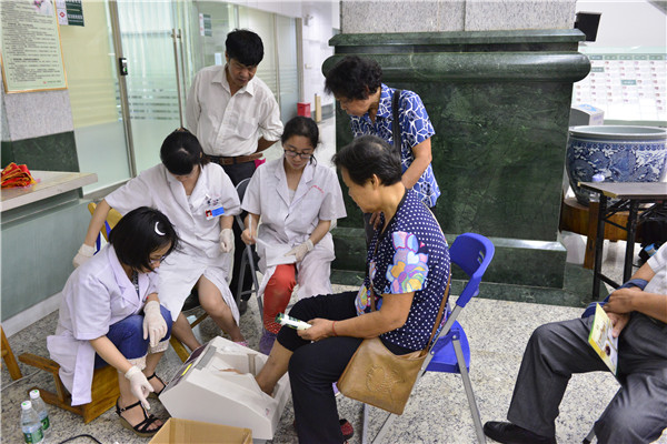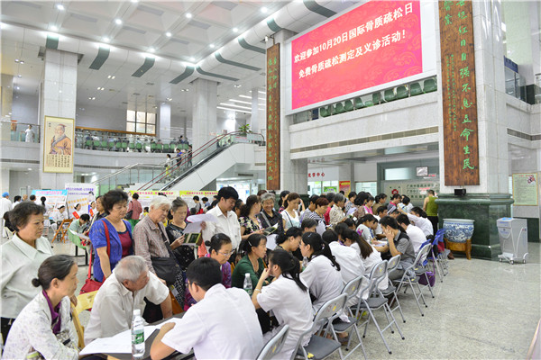 医务人员为市民免费测定骨密度、中医体质辨识、健康咨询等。义诊专家一方面耐心细致的解答就诊市民的问题,一方面通过派发健康宣传资料的形式,积极向市民普及骨质疏松知识,医务人员的热情也得到了市民的积极相应,纷纷前来咨询骨质疏松相关知识及防治措施。专家们不仅纠正了很多人对骨质疏松症防治的认识误区,更从药物治疗、生活方式等方面为前来咨询的患者制定个体化的骨质疏松治疗方案。
