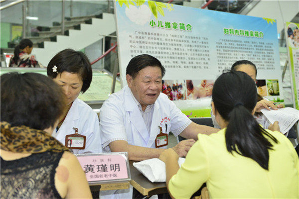 壮医科全国名老中医黄瑾明主任给患者进行义诊