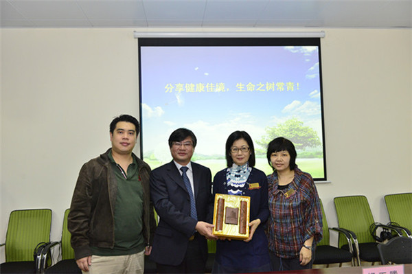 吴明珍主席亦向我们介绍了具有80余年历史的香港仁爱堂中医文化技术优势与先进的管理理念。吴明珍主席对广中医深厚的中医文化底蕴、浓厚的中医文化氛围、显著的中医和中西医结合特色和优势、先进的医院管理理念都给予了高度评价,特别是在中医“治未病”方面要向广中医学习,同时也表达了希望与一附院进行深入桂港两地在医疗领域的交流和广泛合作的愿望。随后,双方就其文化发展的宗旨互赠了礼物,以示两方为中医文化的发展尽善尽责。
