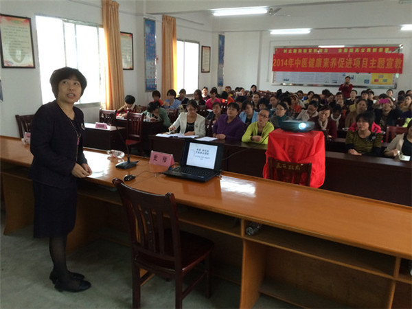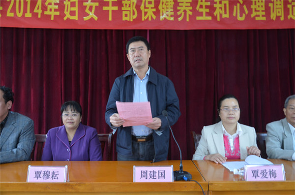 经过长途跋涉,5日上午,全县妇女干部保健养生和心理调适培训班在东兰县三石镇政府礼堂举行。周建国副院长和东兰县委常委、统战部长覃爱梅分别讲话。周副院长介绍了一附院的基本情况和此行的主要任务。他肯定了东兰县委县政府关爱妇女干部和为民办实事的务实举措,简要回顾了一附院深入基层、服务群众的工作概况。周副院长表示,今后一附院将进一步推动基层帮扶工作,和基层干部群众心联心,为基层人民群众提供更质优价廉的中医药服务。覃爱梅常委对一附院的帮扶基层义举表示了高度肯定和诚挚感谢,强调了开展妇女卫生保健工作的积极意义和重要作用,动员全县妇女干部积极投入到全民健身计划中来,通过提升身体素质进而提高政府服务效能,并带动全民健身运动的蓬勃开展。开班仪式由东兰县吴艳华副县长主持,在主席台就座的还有县人大常委副主任覃穆耘、县政协副主席黄海军、全国名老中医黄鼎坚、一附院院长助理、院办主任黄仲海、广西名中医、一附院大内科主任史伟。东兰县妇女干部共150多人参加。