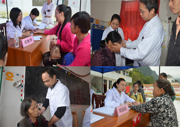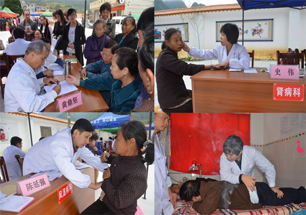 一附院专家博士团同时赴三石镇公平村,在“桂派中医大师、全国名老中医黄鼎坚基层工作站”开展“中医健康素养促进项目”主题义诊,参加义诊的专家有黄鼎坚教授,中医外科主任张力教授,风湿病科副主任陈延强副教授,儿科李素芬副教授,脾胃病何慧副教授,脑病科黄勇华博士,妇科庞秋华博士,针灸科邹卓成博士,推拿科甘炜硕士。史伟教授和刘园园讲师在讲座结束后,也赶赴公平村增援义诊活动。