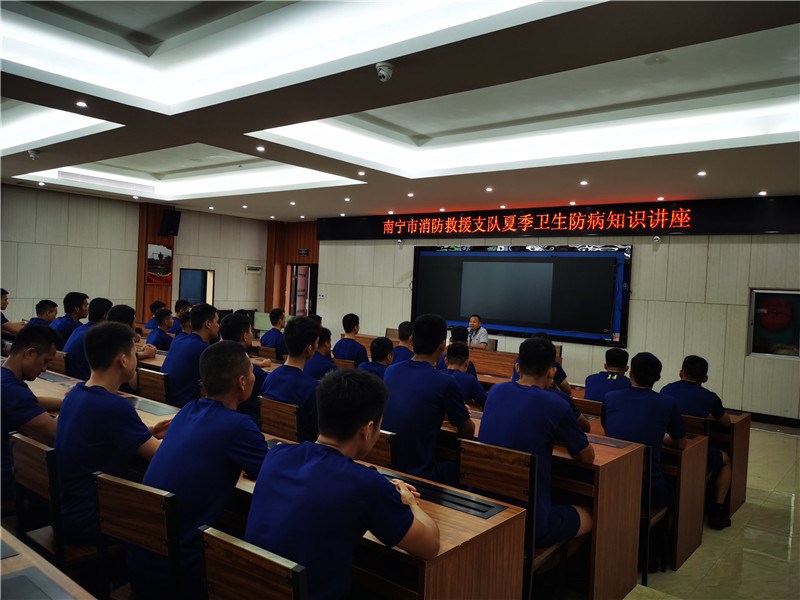 讲座现场,由康复医学科韦业医生为全体消防员们开展主题为“夏季卫生防病知识讲座”,授课中,韦医生主要从夏季流感预防、处置等方面对甲型流感做了深入浅出的讲解,引导全体消防救援人员在日常工作、生活、训练中要注重养成健康的个人卫生习惯和防护意识。