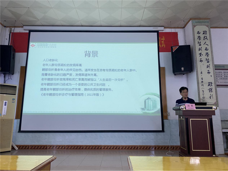 10日下午,段戡名中医团队6名成员为基层医护人员进行专科相关知识的授课。《<老年髋部骨折诊疗与管理指南(2022年版)>的解读》,对老年髋部骨折诊疗与管理指南的原则进行解读,重点推广老年髋部骨折的MTD理念;《<中国老年髋部骨折患者麻醉及围术期管理指导意见>的解读》,详细解读老年髋部骨折患者麻醉及围术期的新知识;《浅谈申报基金项目的一点体会》,为基层医院人员培养科研水平;同时讲授《常见足踝扭伤的诊疗》,提高基层医院对骨伤科常见病的诊疗水平;护理方面就《皮内针在创伤骨科病人的应用》《耳穴压豆的中医护理》技术进行推广应用。