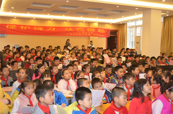 由广西少工委和一附院共同主办的“保护视力,从我做起”眼保健健康宣教活动,于12月9日下午3时,在埌东小学进行。一附院眼科范梓晰、庞运轩、黄柳坪、白娟鲜、江昆等5位医师,为该校三年级的同学进行“保护视力,从我做起”的健康知识讲座及免费视力、屈光检查活动。活动受到埌东小学同学们的热烈欢迎。